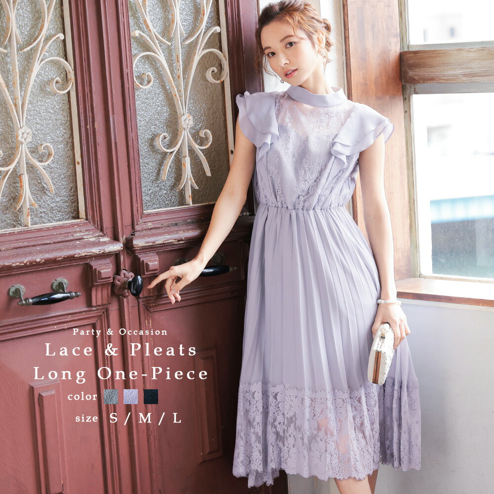 楽天市場 結婚式 ワンピース パーティードレス ロング ノースリーブ プリーツスカート S M L 小さいサイズ 大きいサイズ ハイネック シアー ロング丈 オケワンピ 披露宴 二次会 オケージョン 1 5次会 春 夏 秋 冬 他と被らない 二次会 謝恩会 花柄 レース 成人式 同窓会